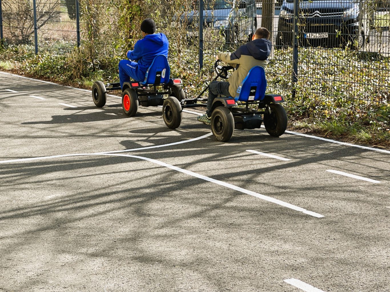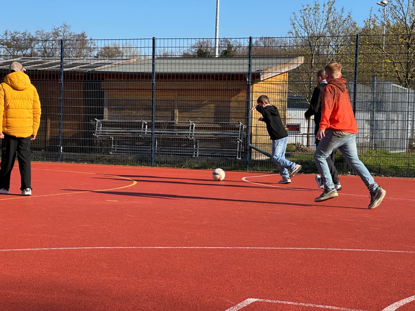 In den Pausen erwartet unsere Schüler:innen ein abwechslungsreiches Angebot, das für jeden etwas bereithält. Auf dem „roten Platz“ gibt es ein spannendes Sportprogramm, das für Bewegung und Spaß sorgt. Unsere Klassen 5 bis 7 können zusätzlich den Schulgarten mit Klettergerüst und Kettcars nutzen – ein Ort, um sich auszutoben und abzuschalten.